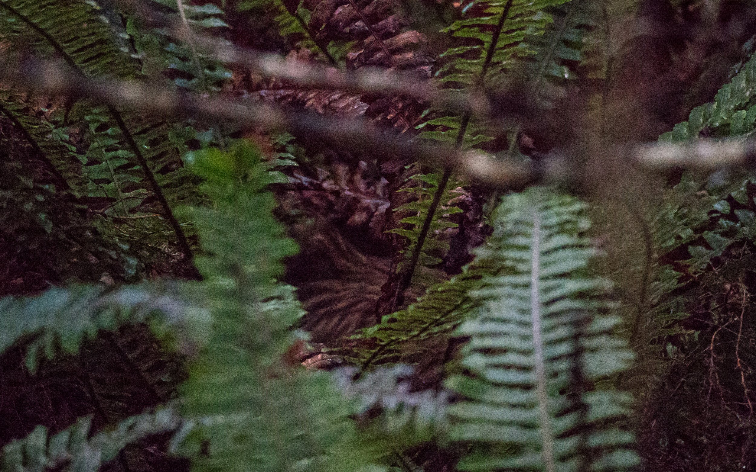 Watching the ferns move and catching the odd glimpse of a brown feather through the thick layers of fern.